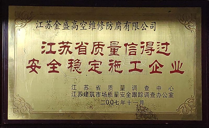 2007年江蘇省質(zhì)量信得過(guò)安全穩(wěn)定施工企業(yè)